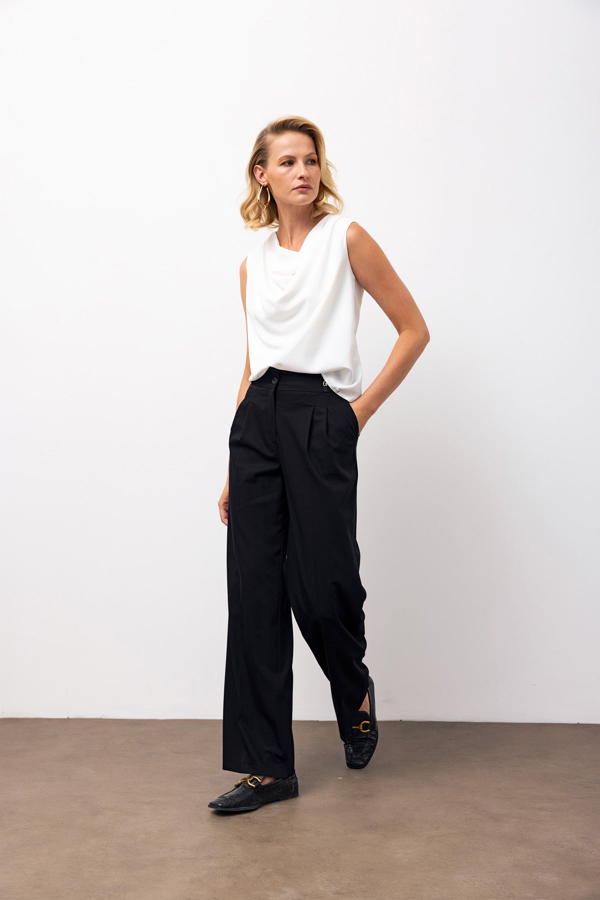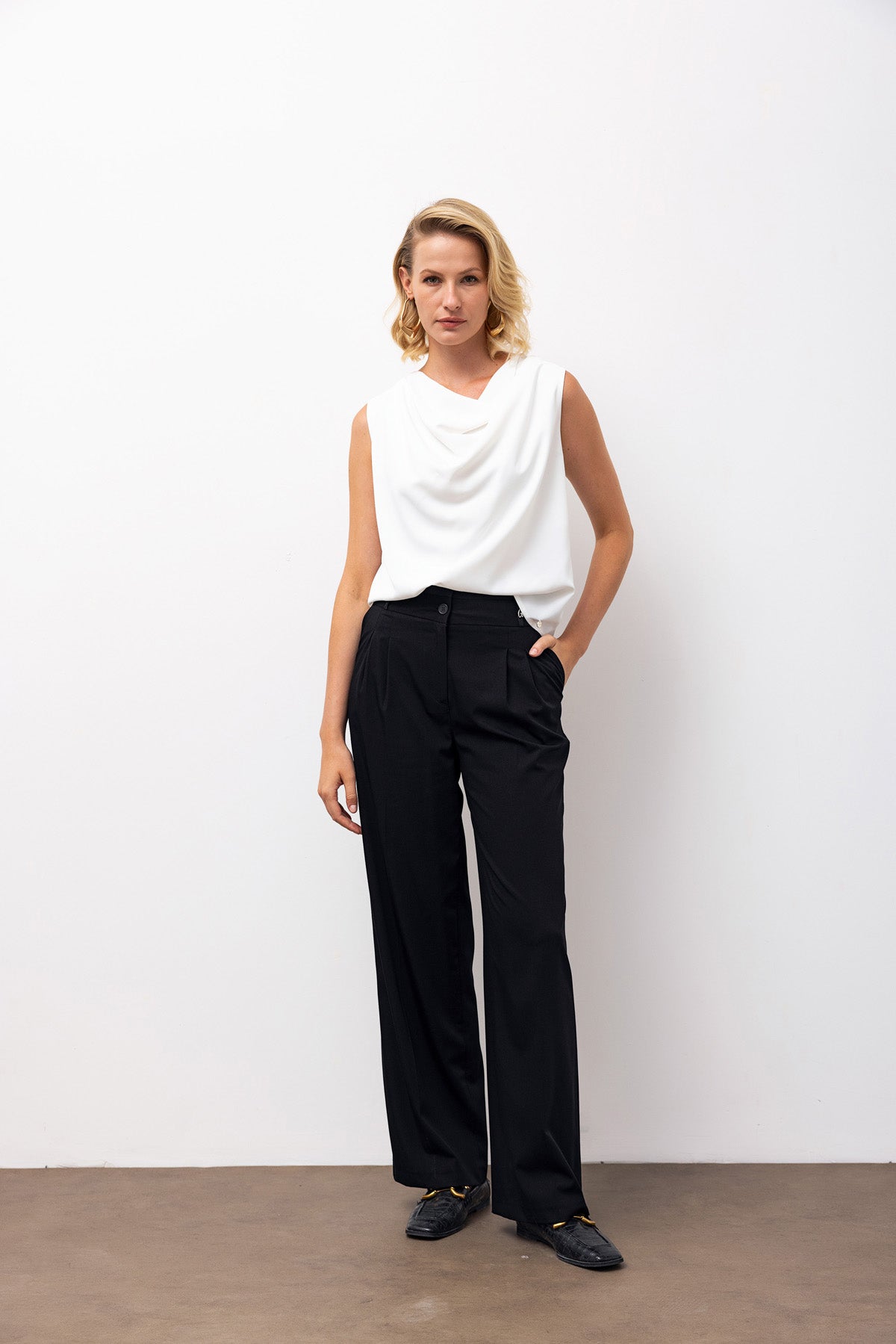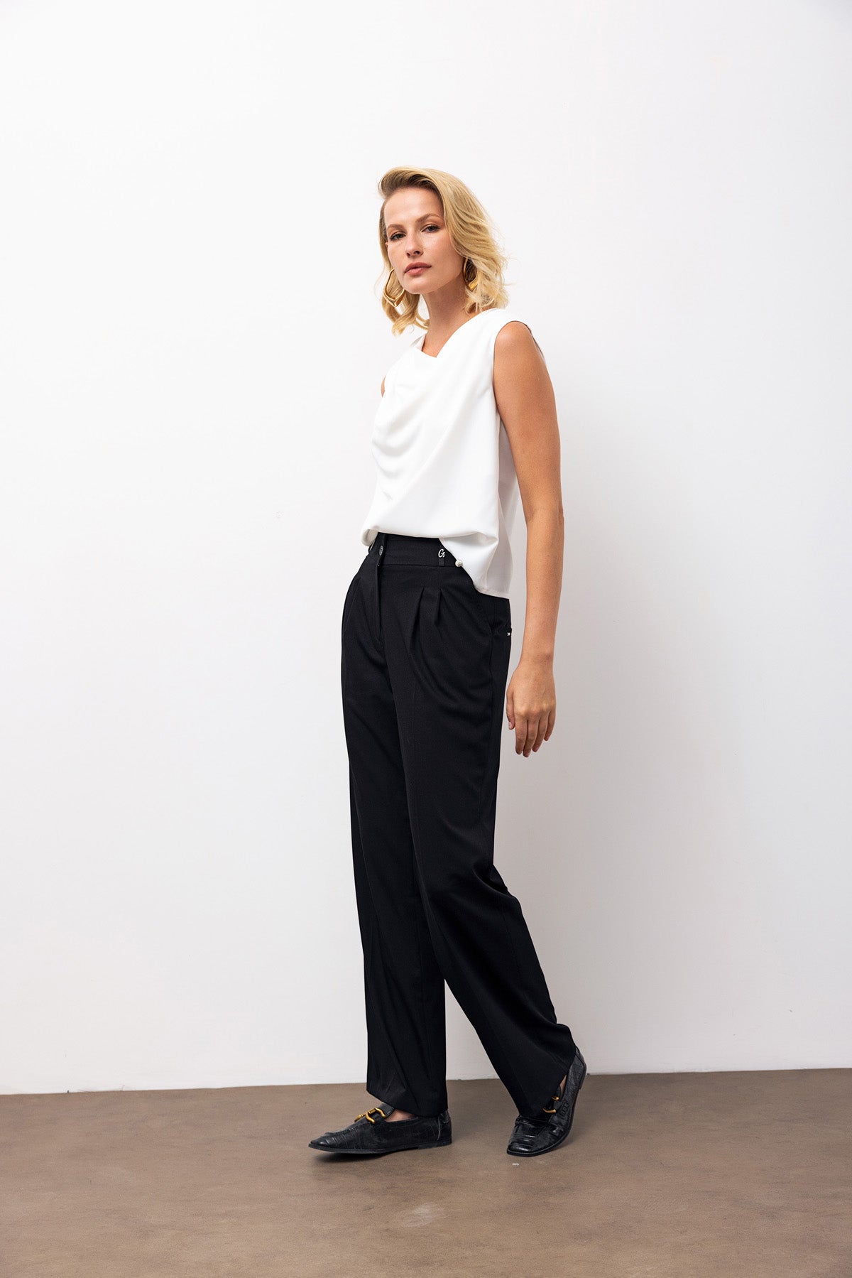 High-Waisted Wide-Leg Trousers with Pleat Detail - Black