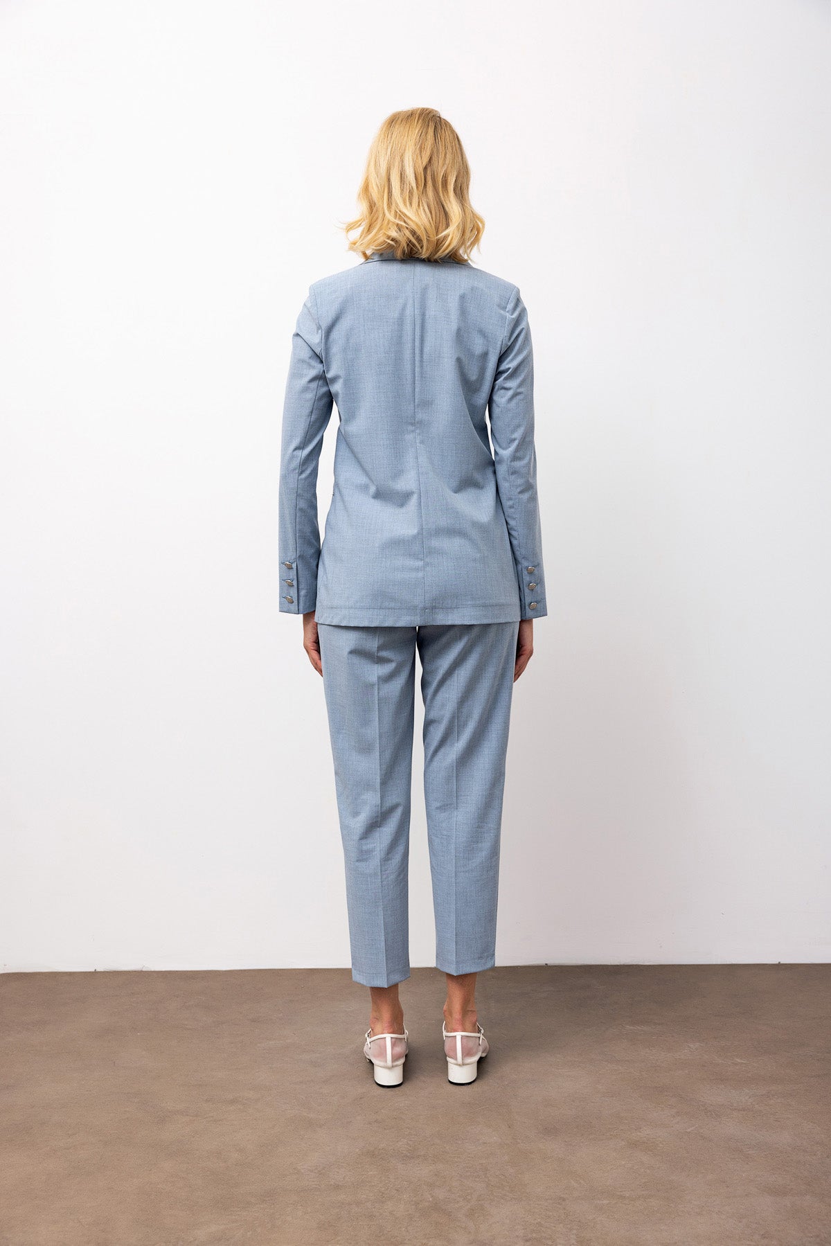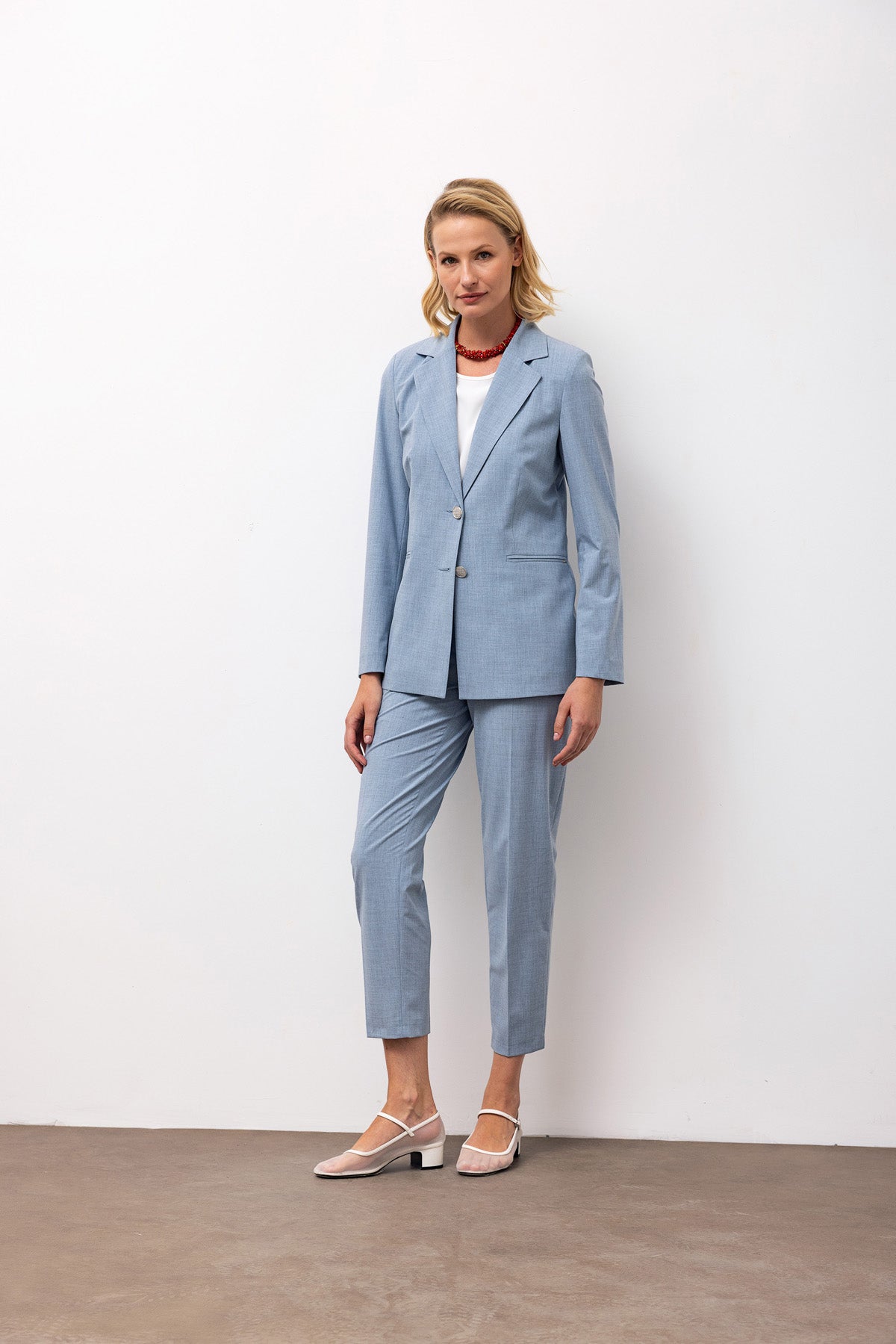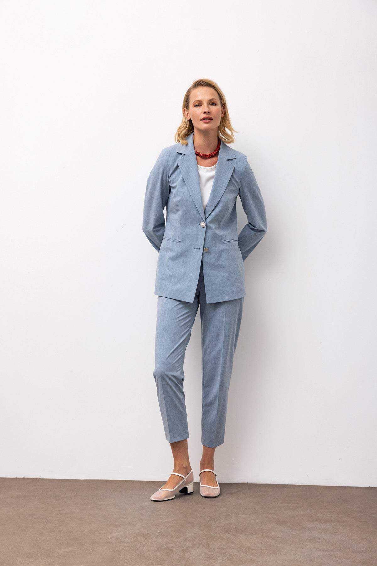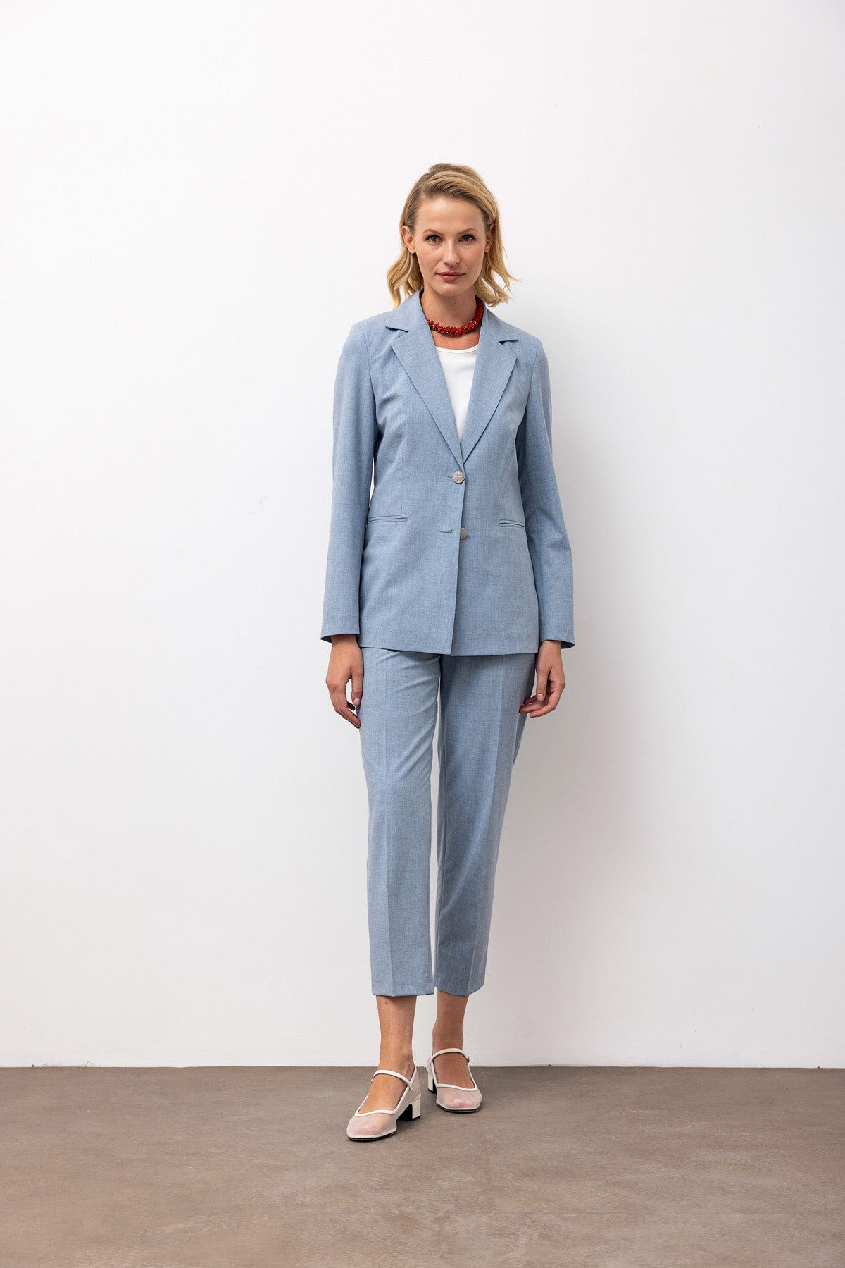 Single-Breasted Blazer & Slim Trousers Set - Blue