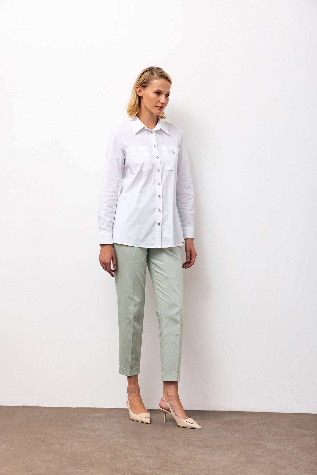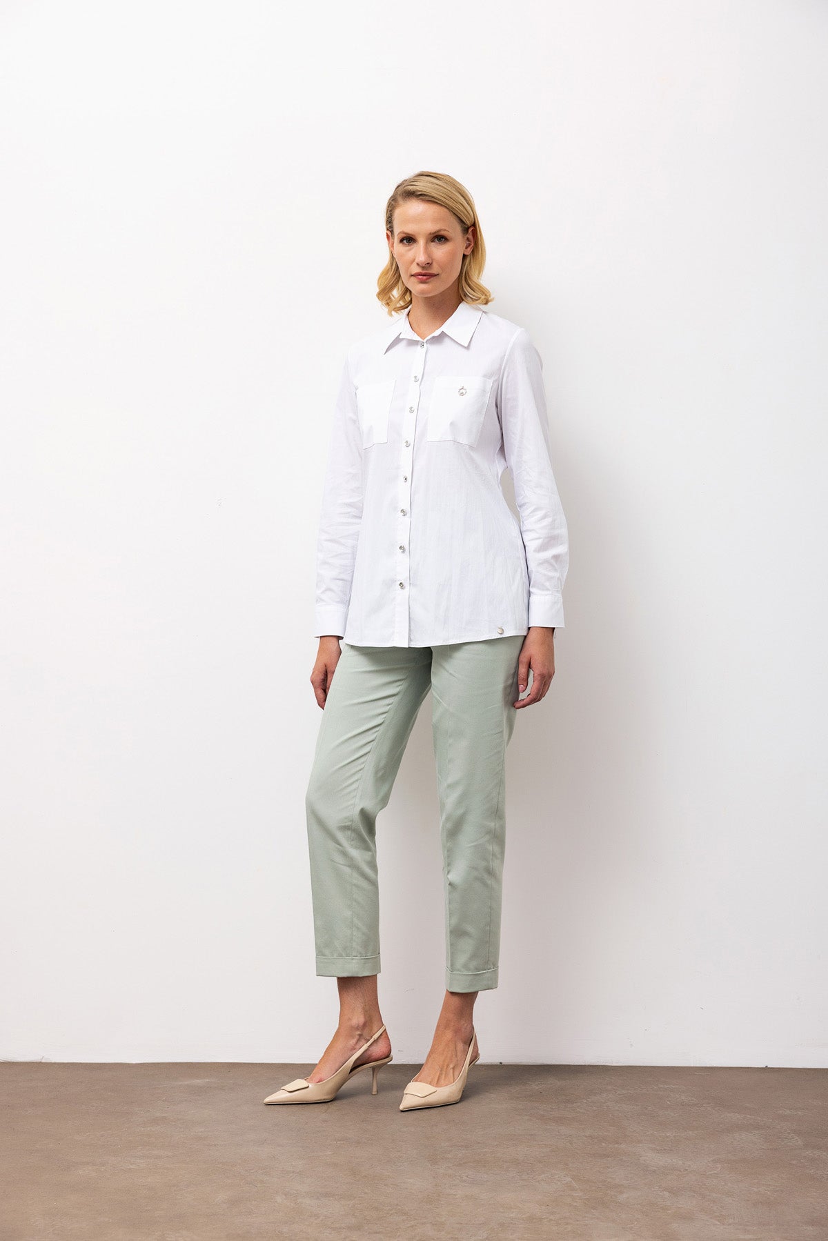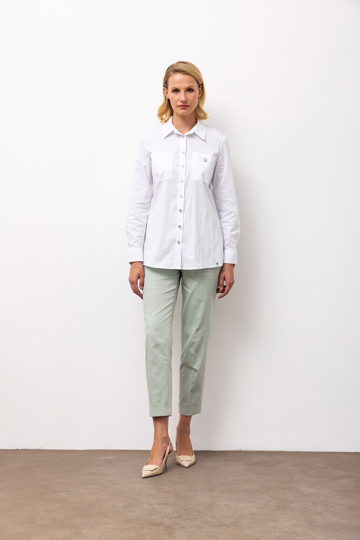 • Relaxed, tailored silhouette – easy to wear tucked or untucked