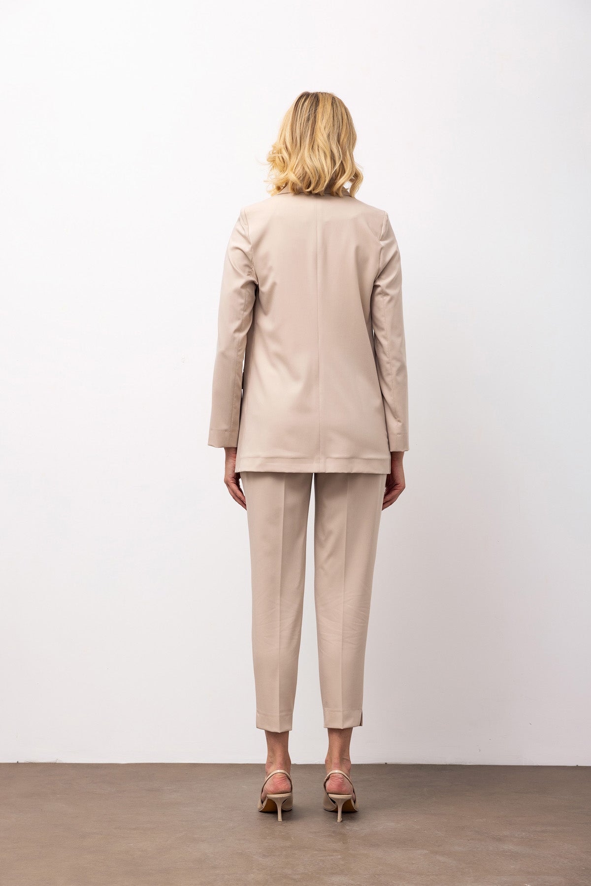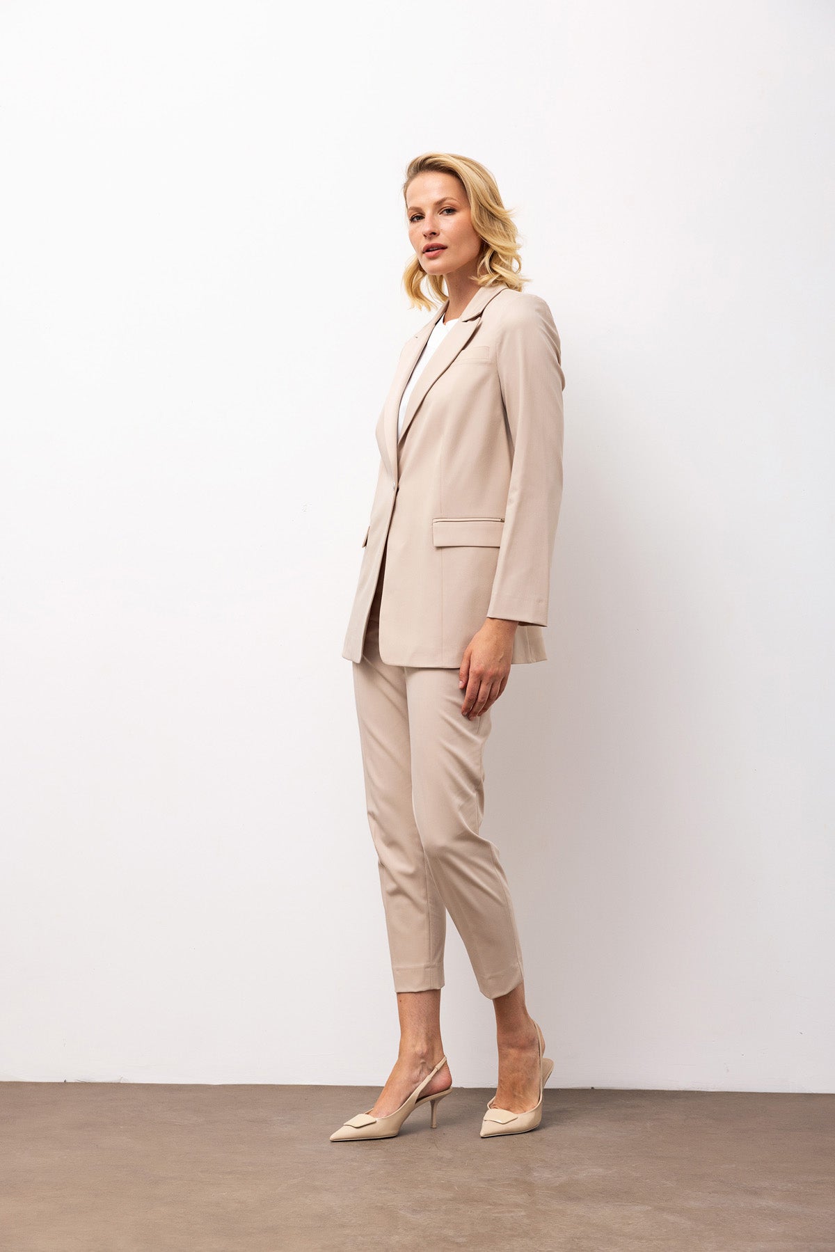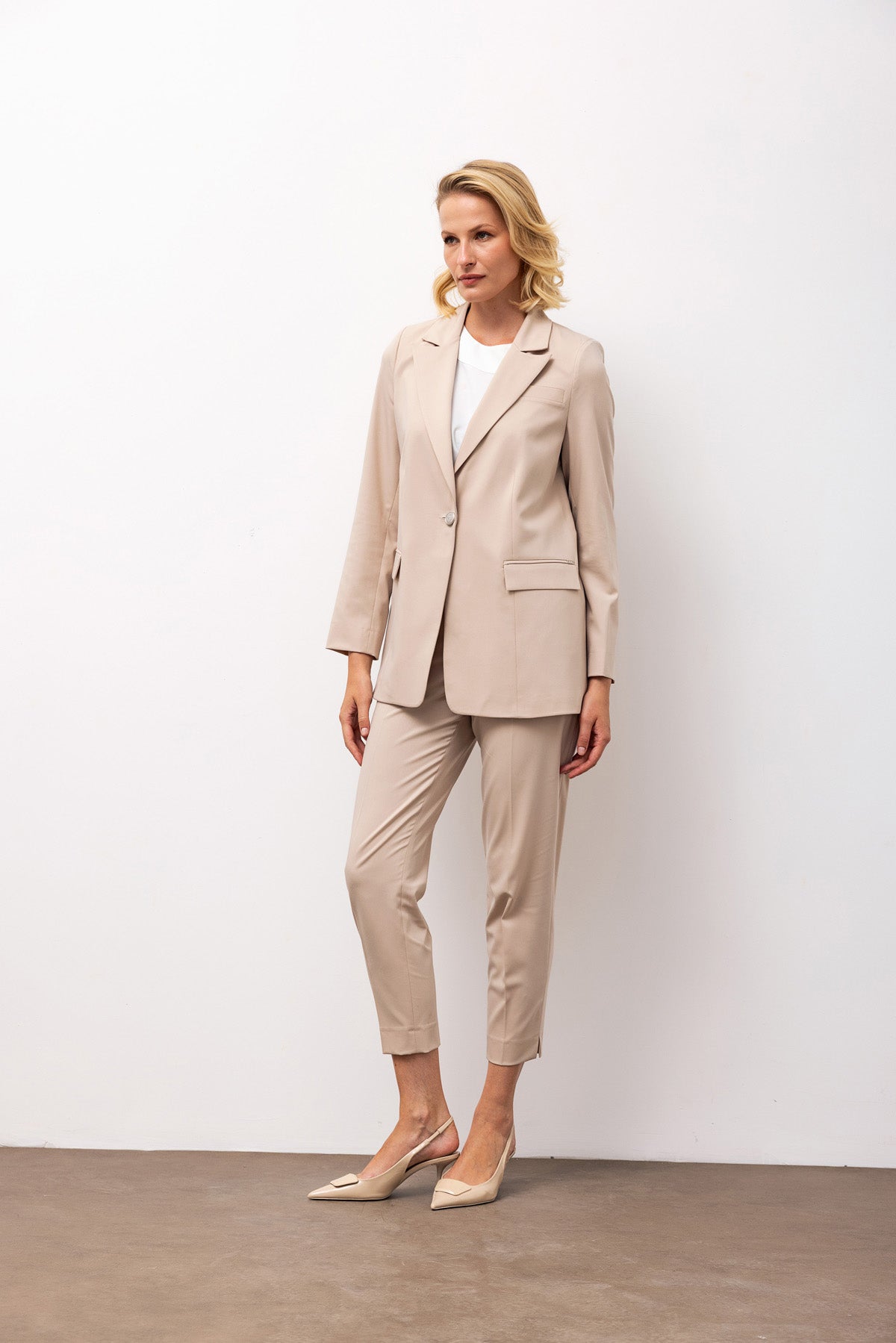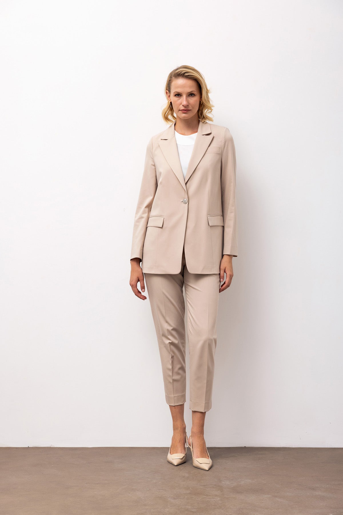 • Single-breasted blazer – features notched lapels, flap pockets, and a single-button closure