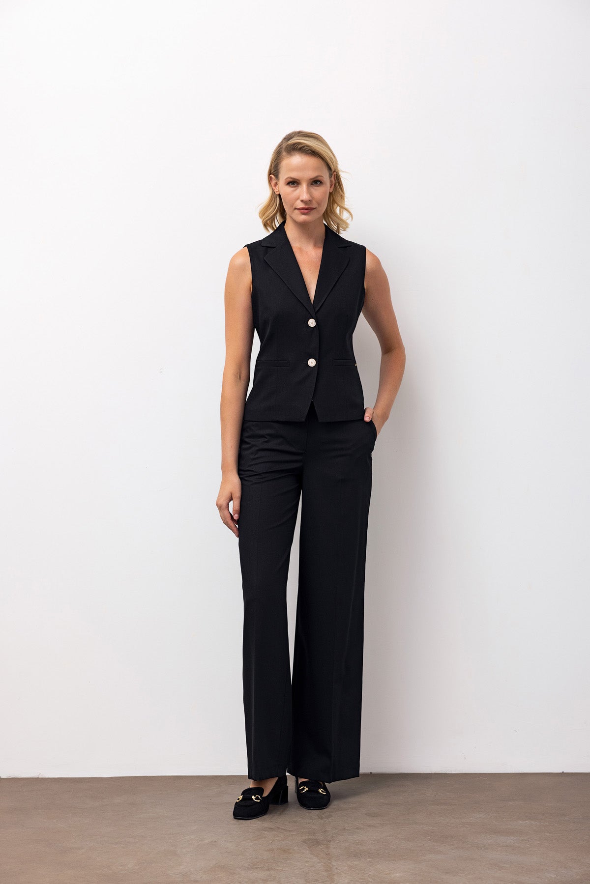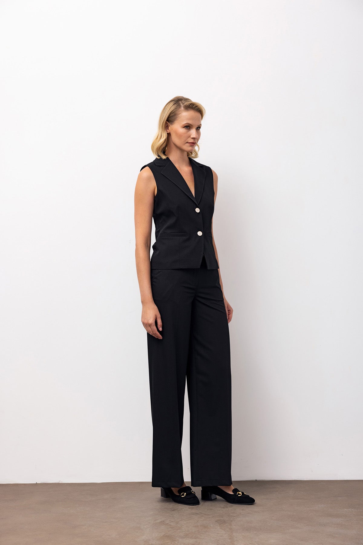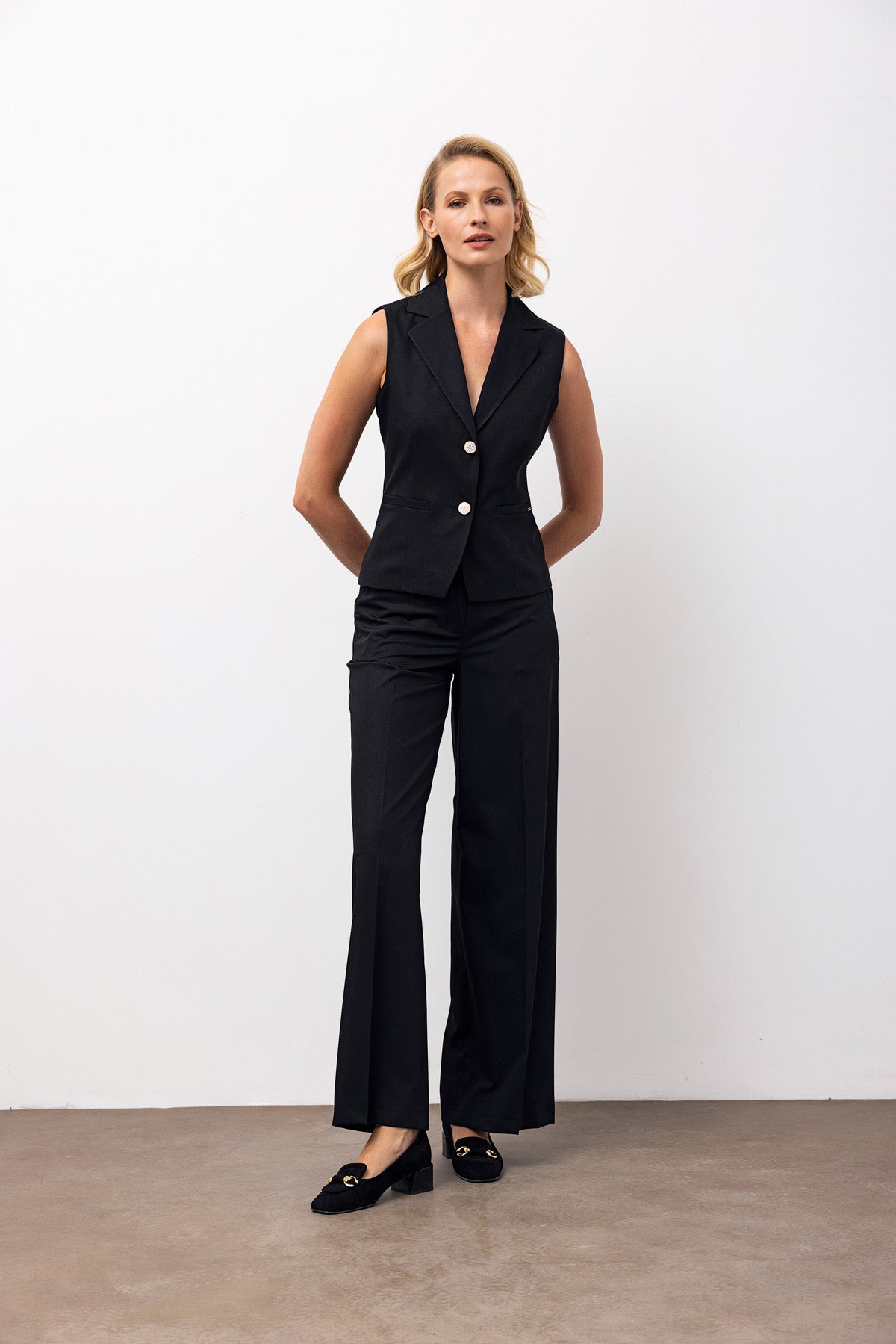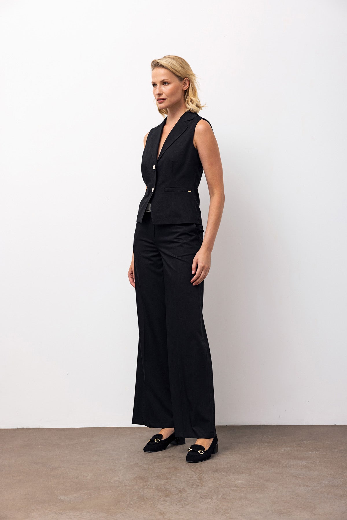 Sleeveless Blazer & Wide-Leg Trousers Set