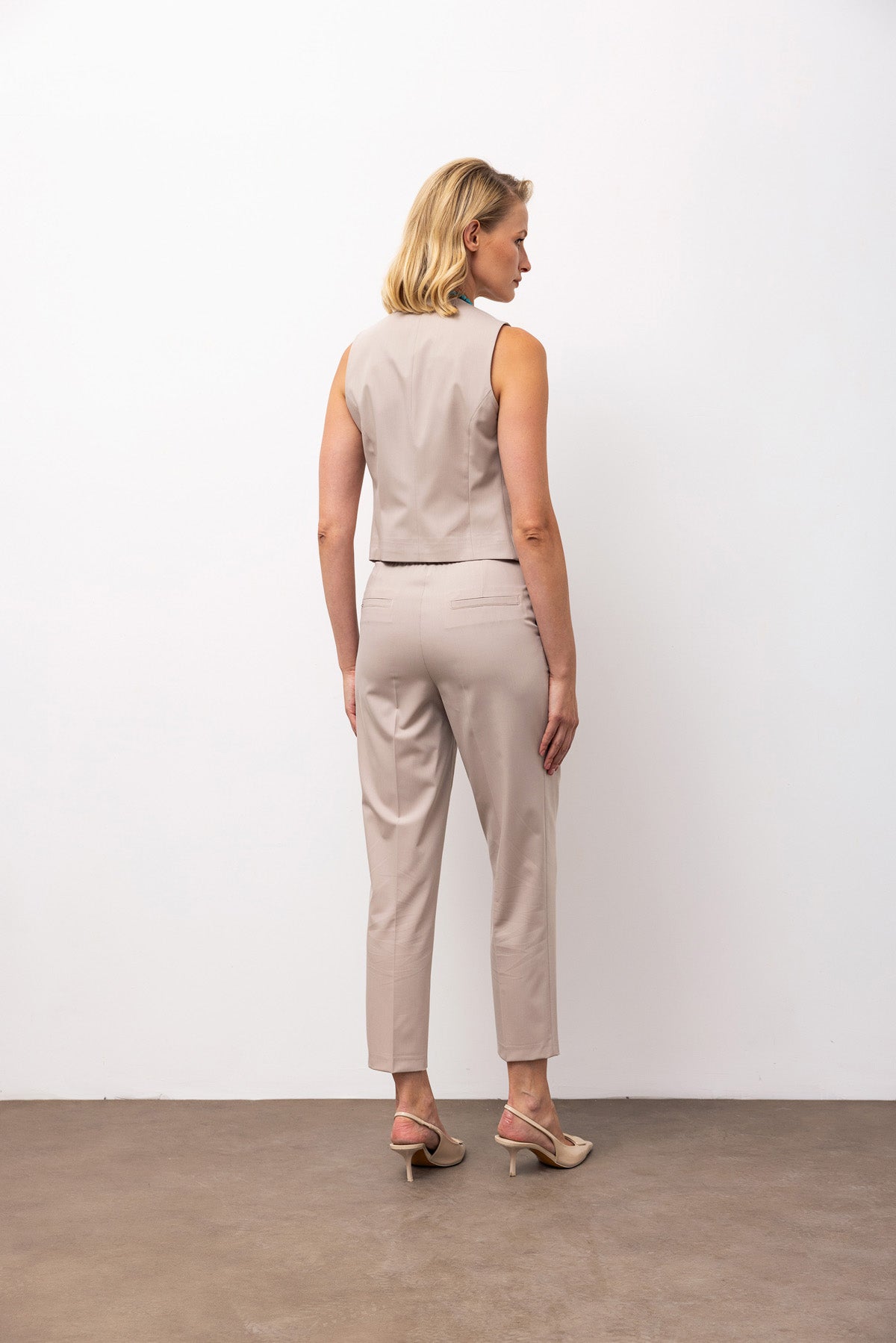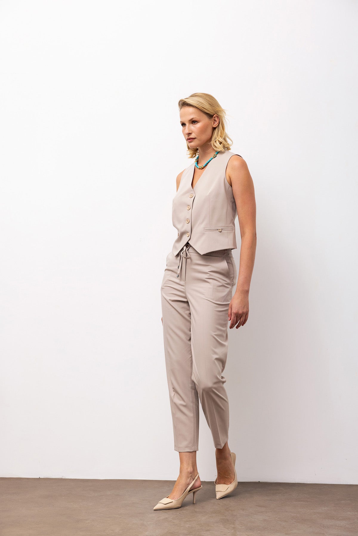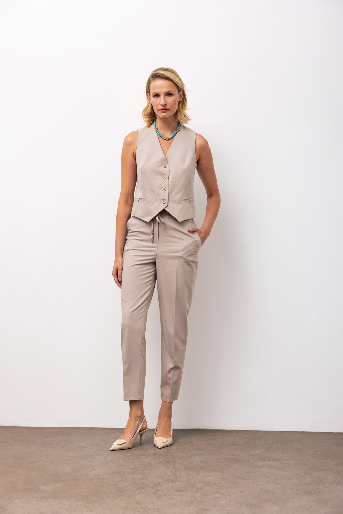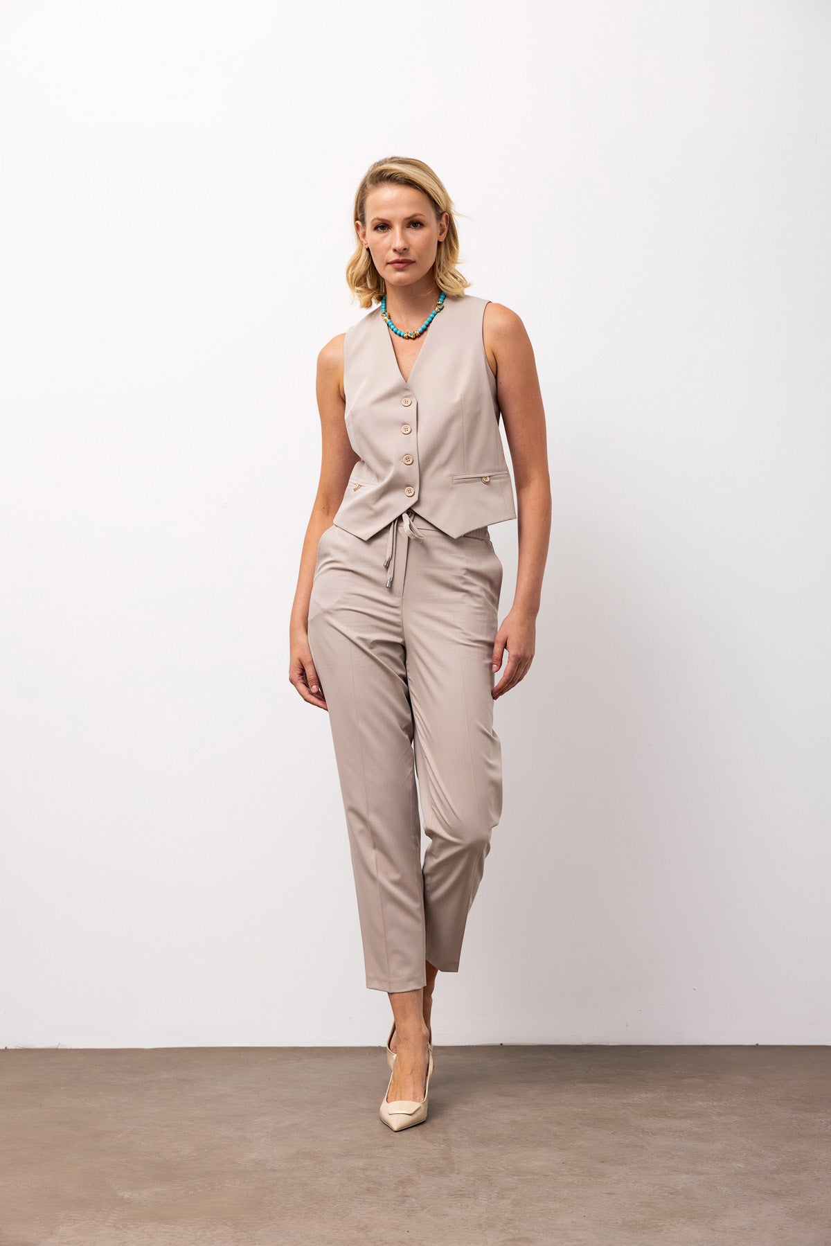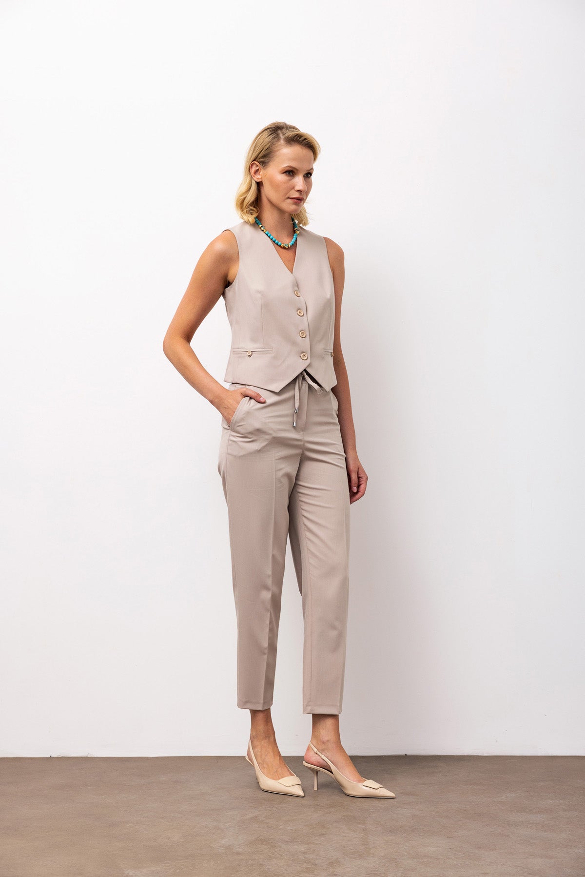 Sleeveless Vest & Tapered Trousers Set - Beige