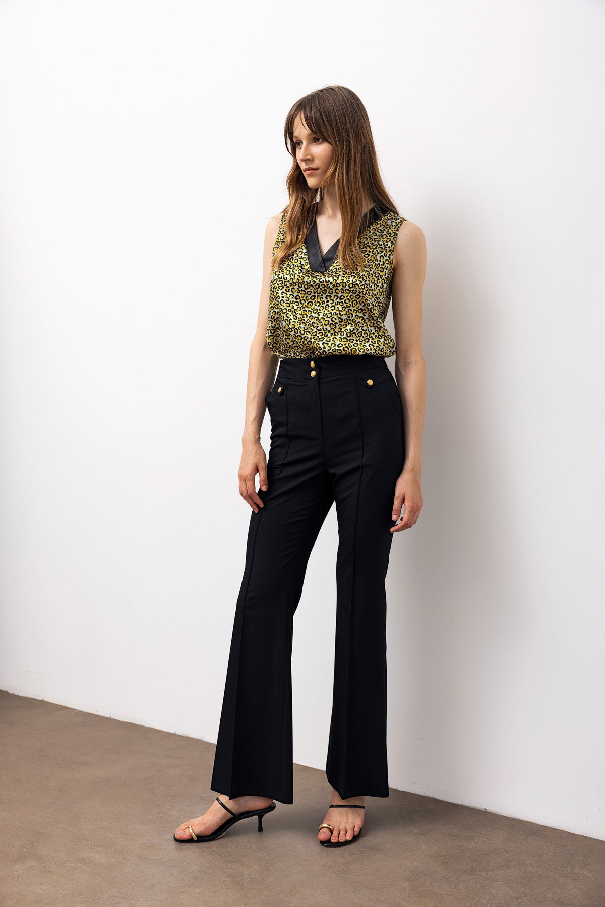 Gold Button Flare Trousers - Black
