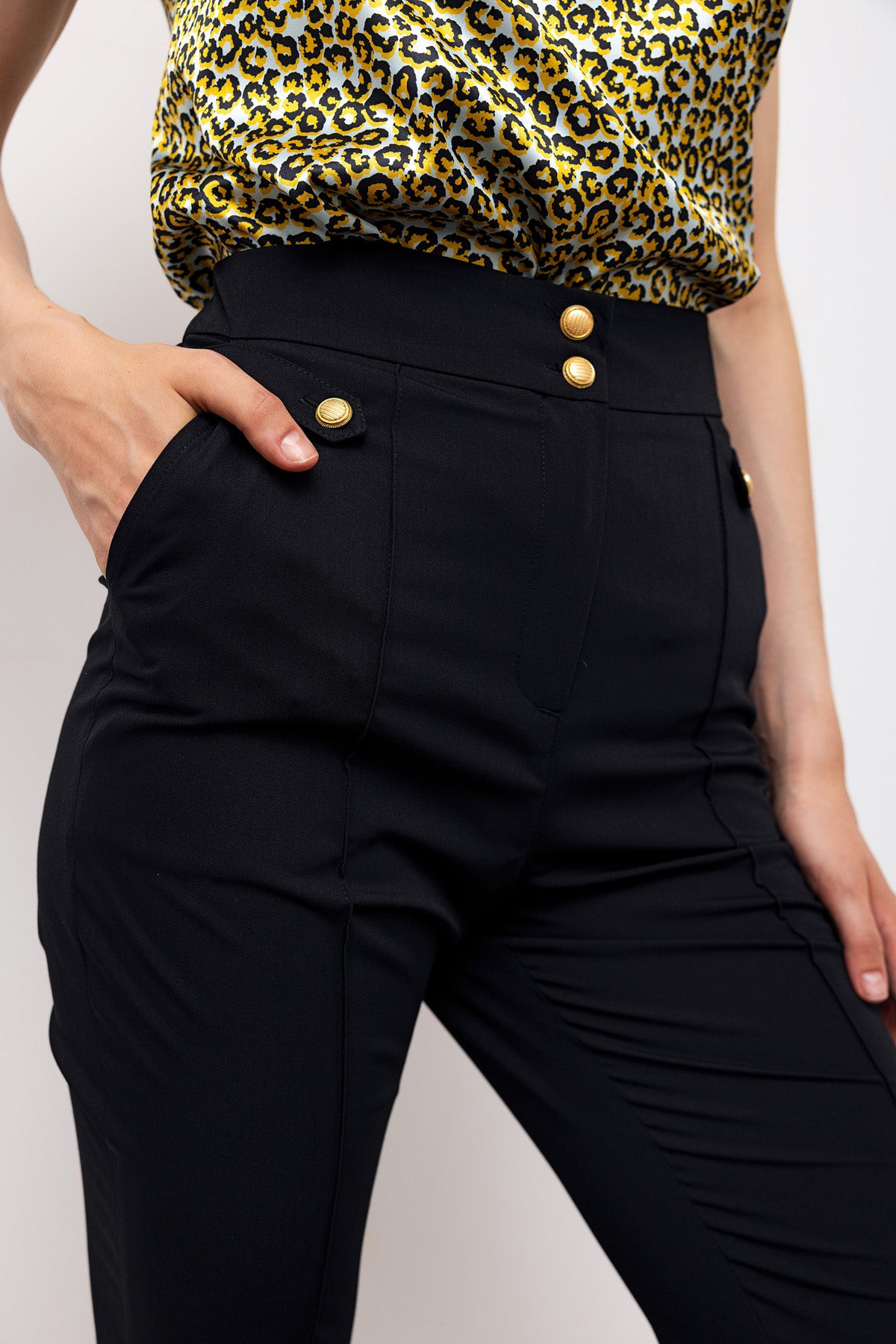 • Structured waistband for a polished silhouette