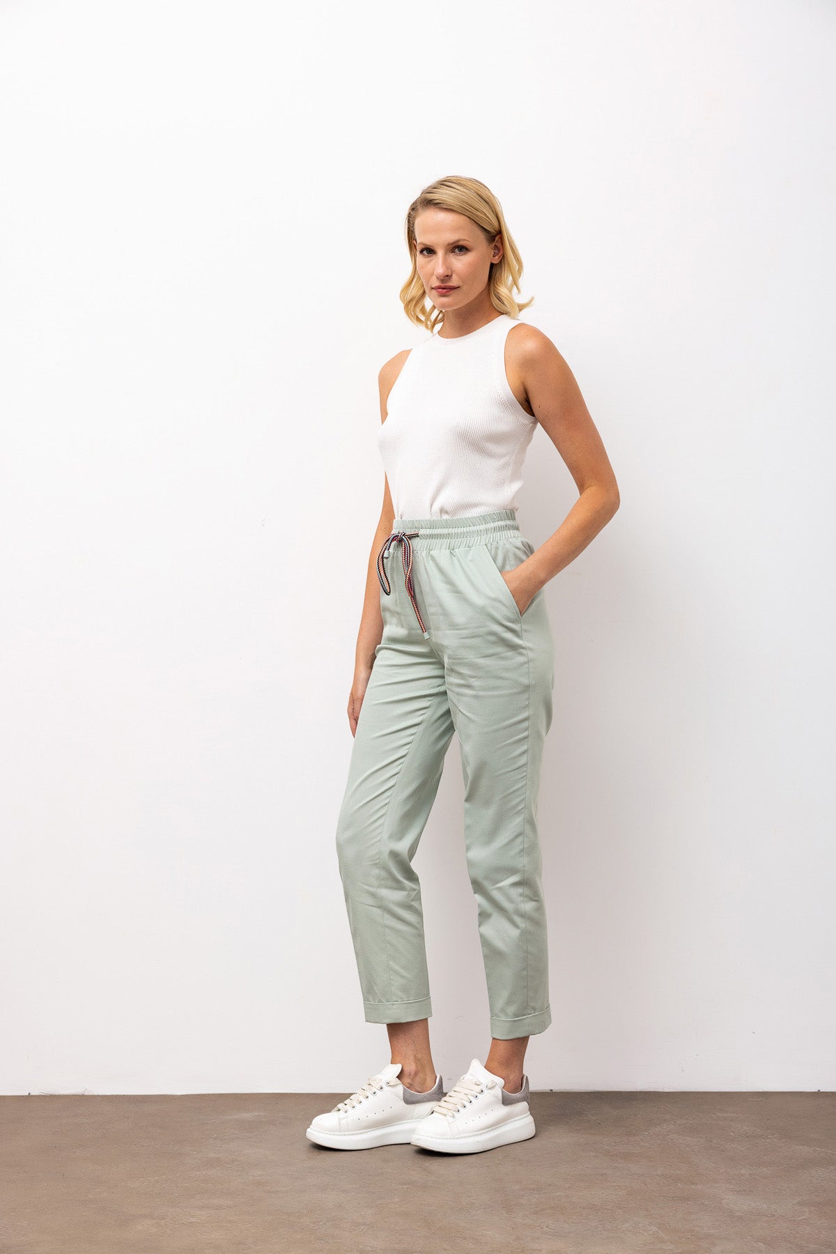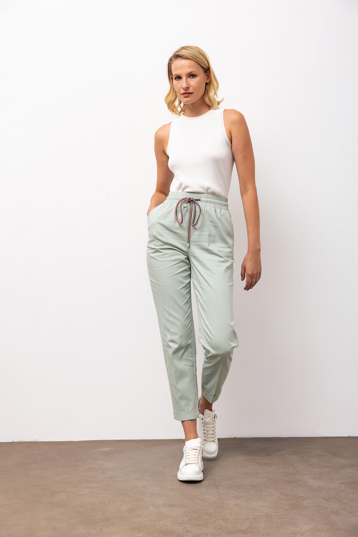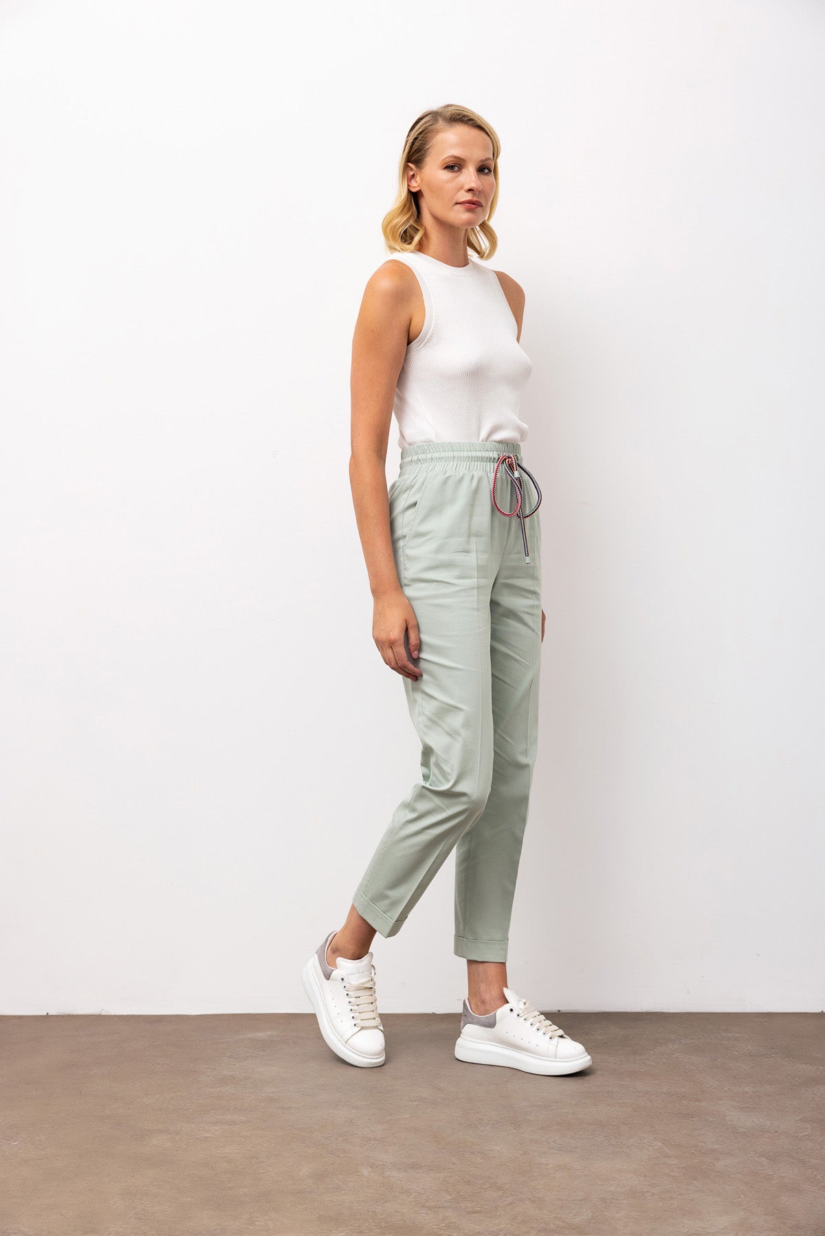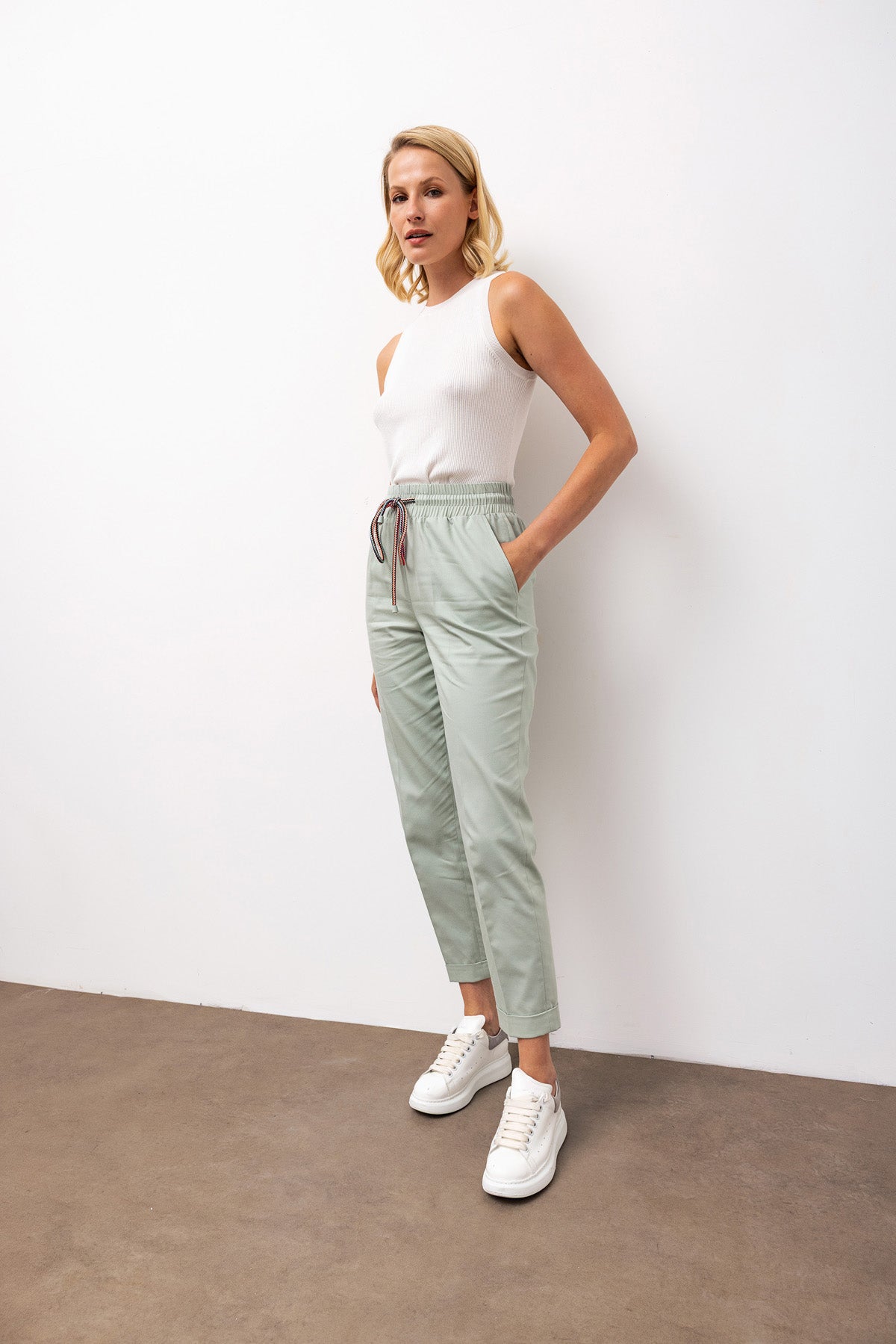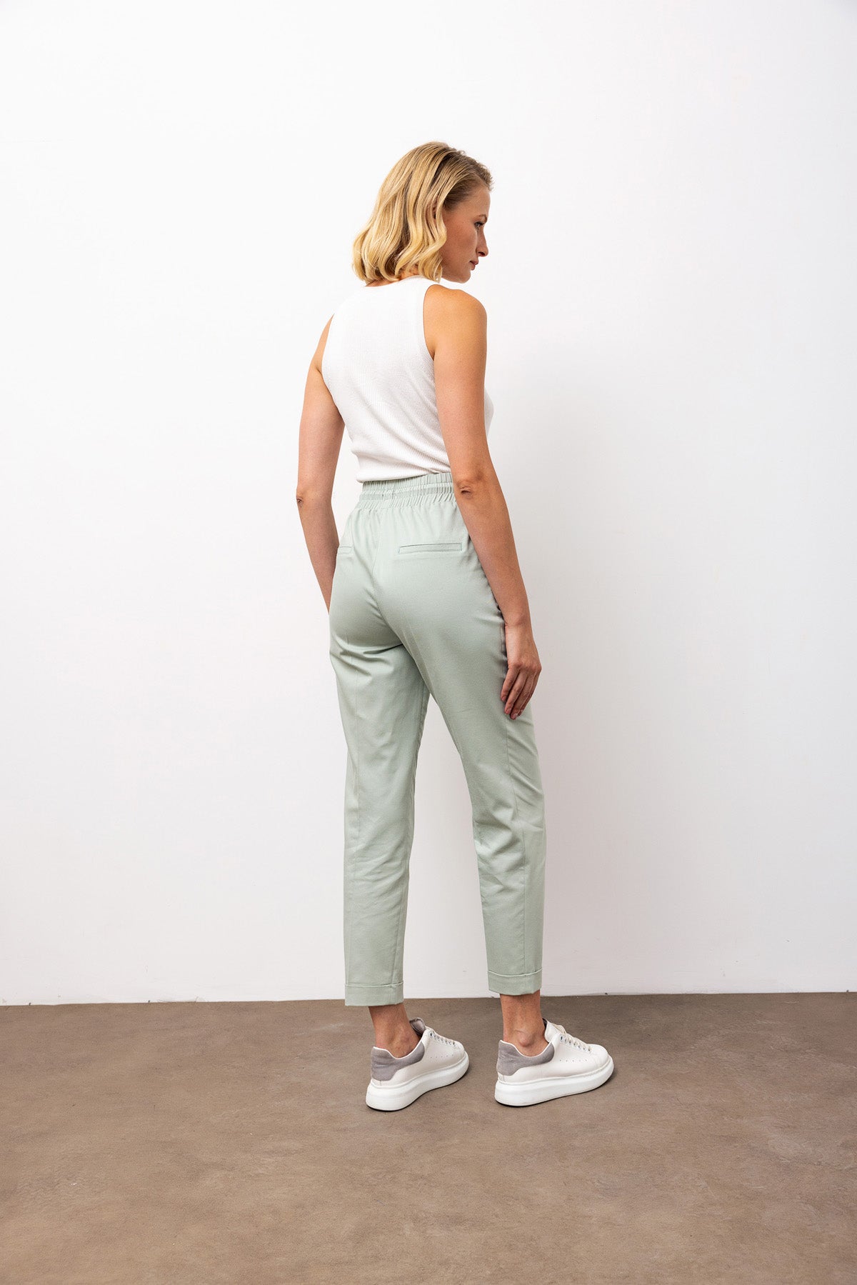Yüksek Bel Rahat Pamuklu Pantolon - Nane
