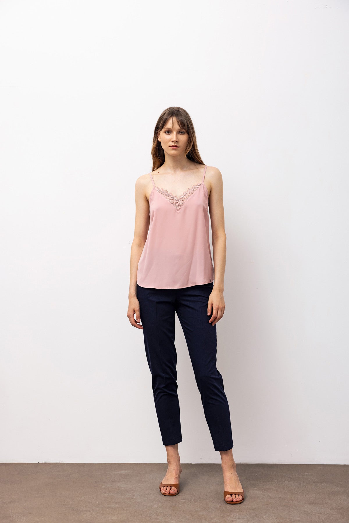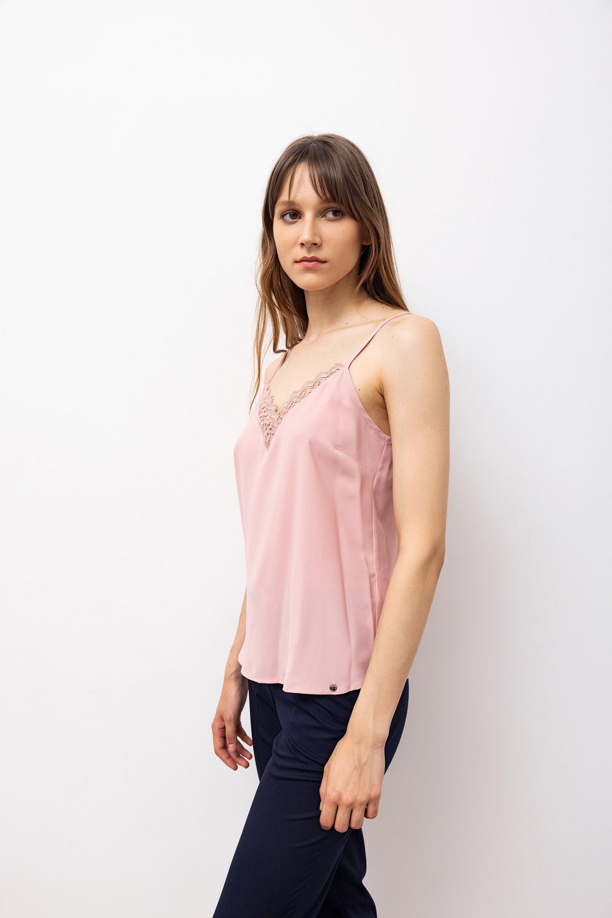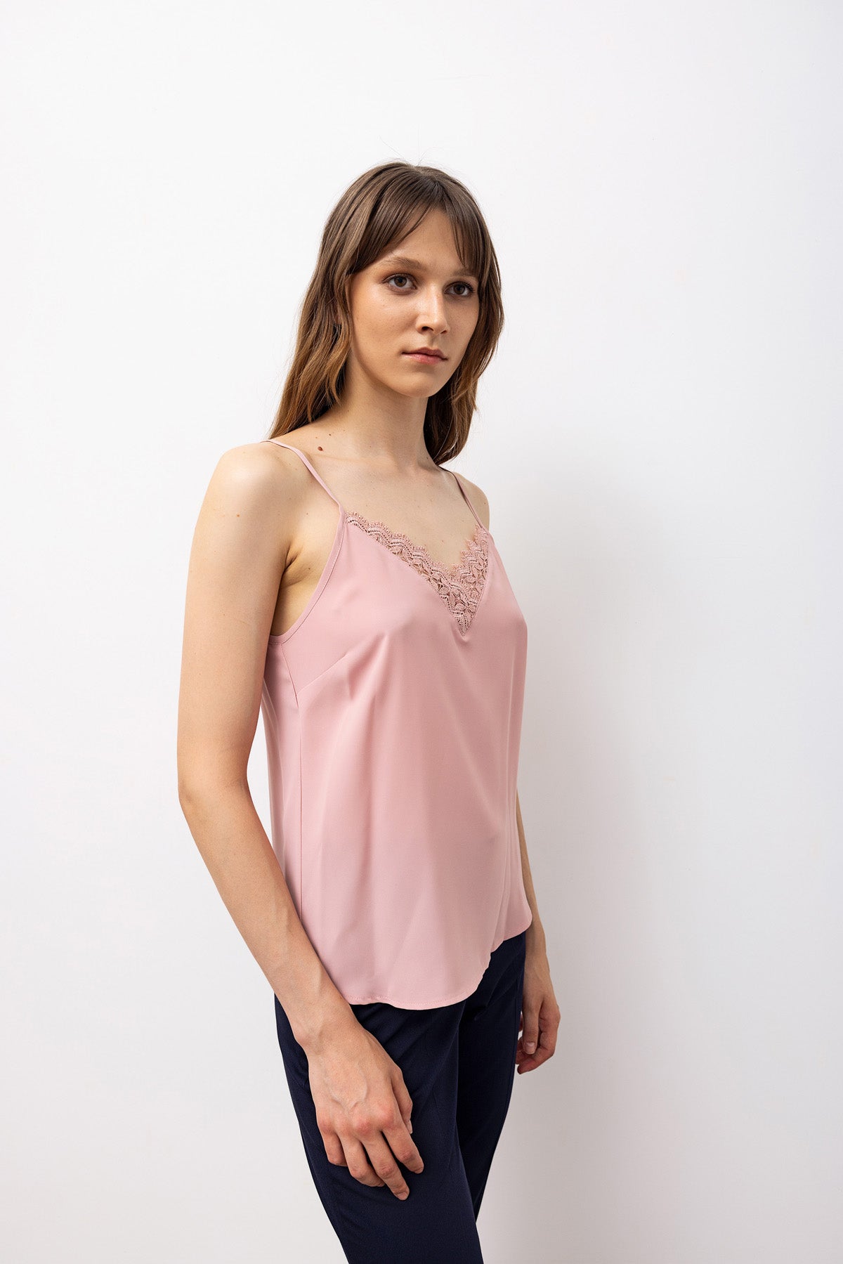 • Dantel süslemeli V yaka – zarafet ve yumuşaklık katar