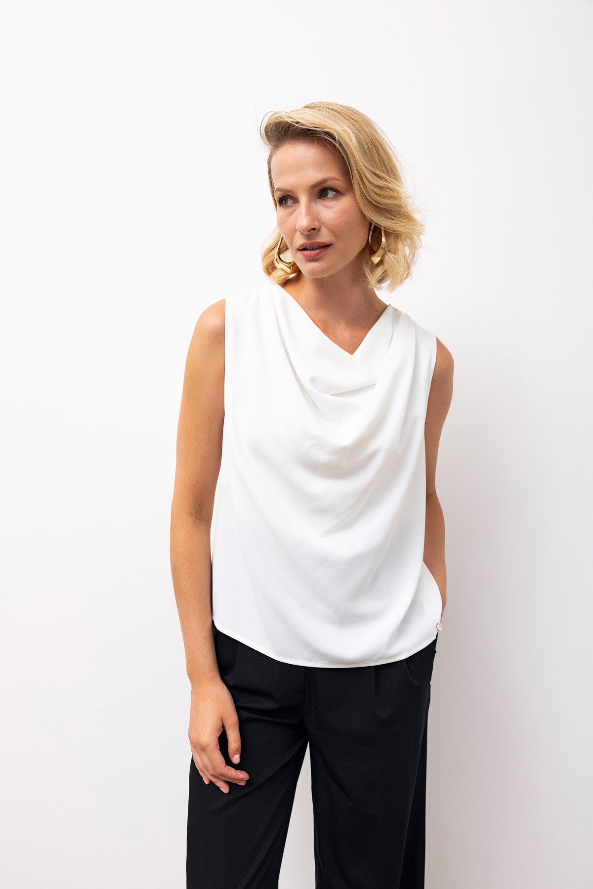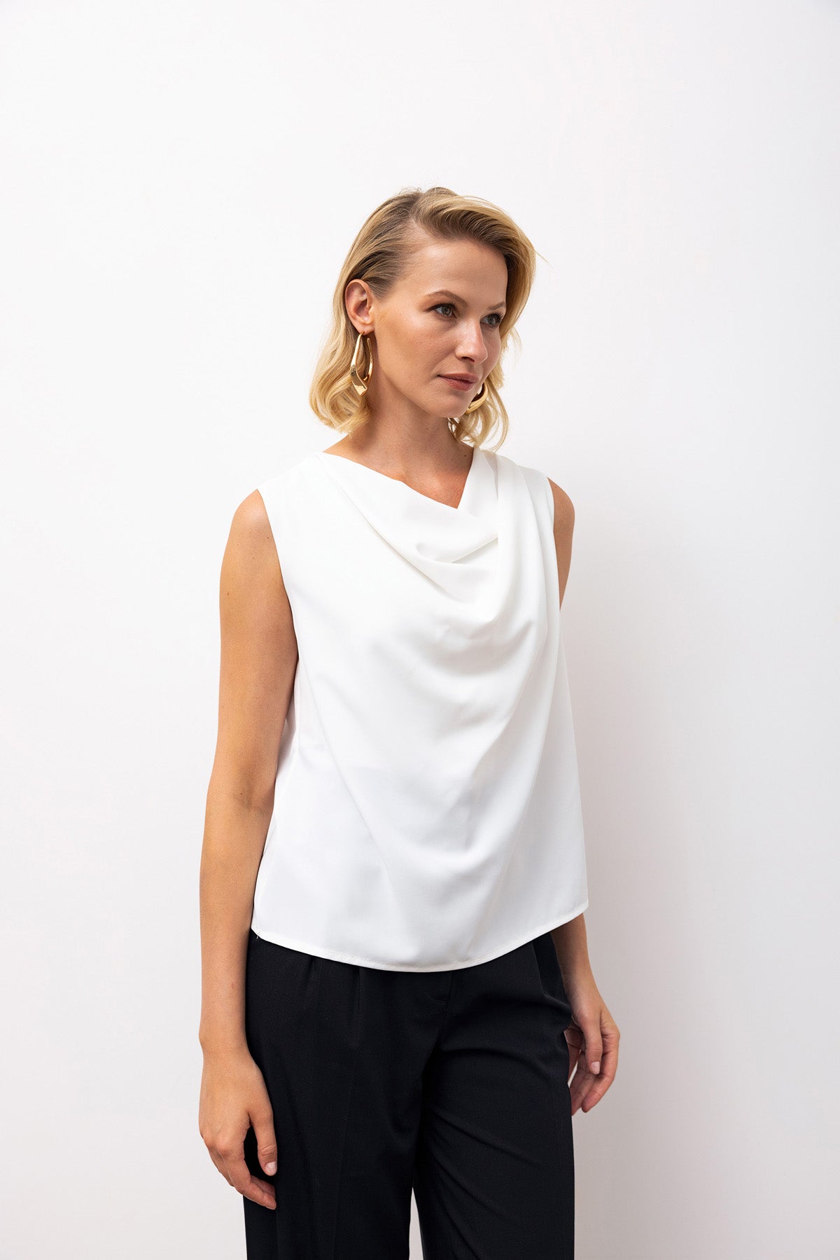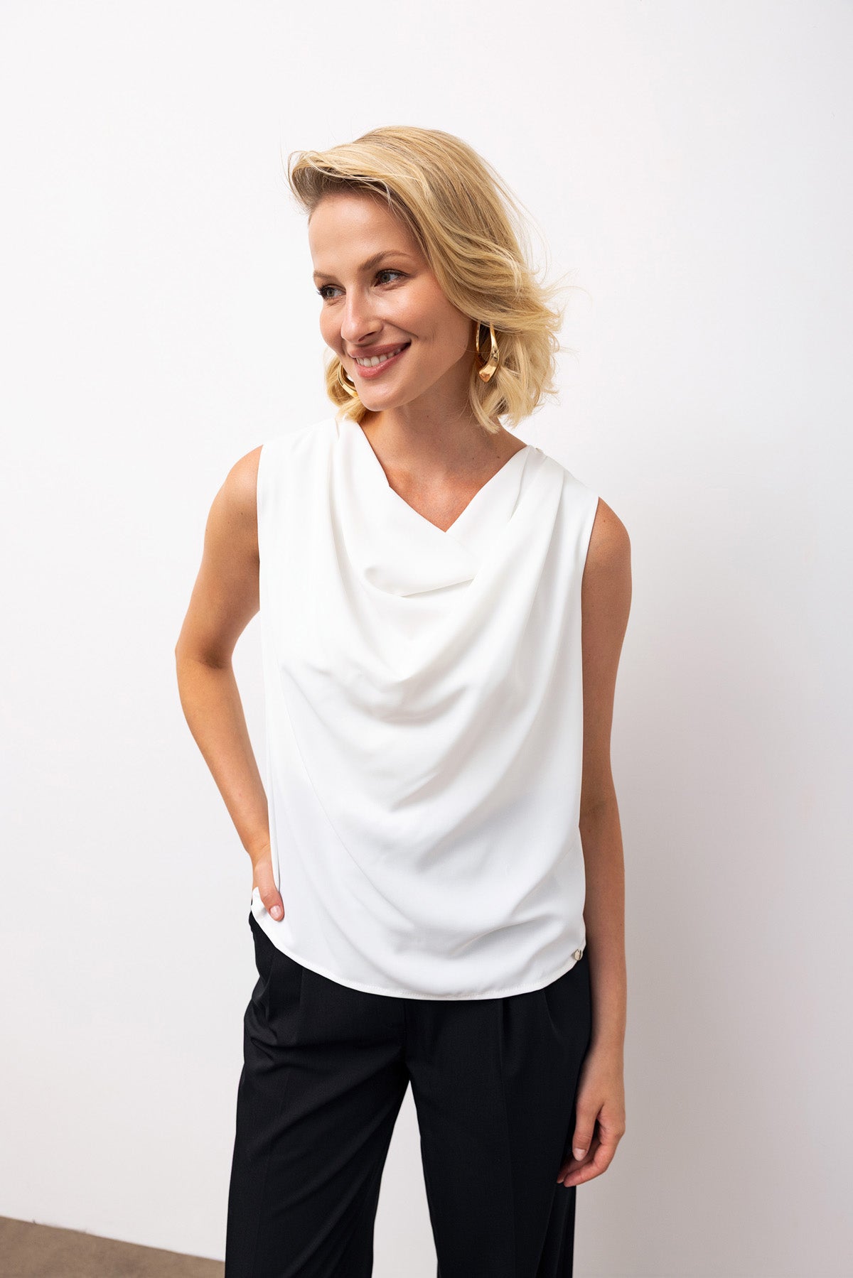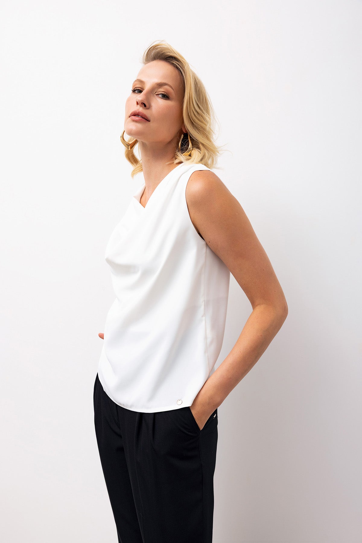 Kolsuz Dökümlü Yaka Bluz - Siyah