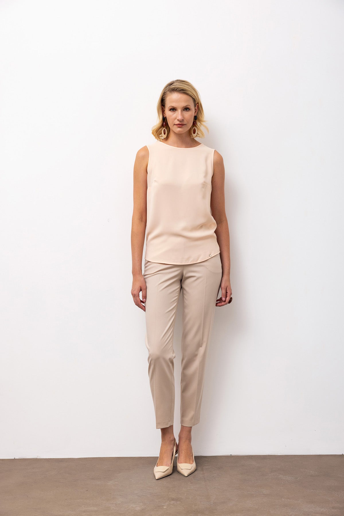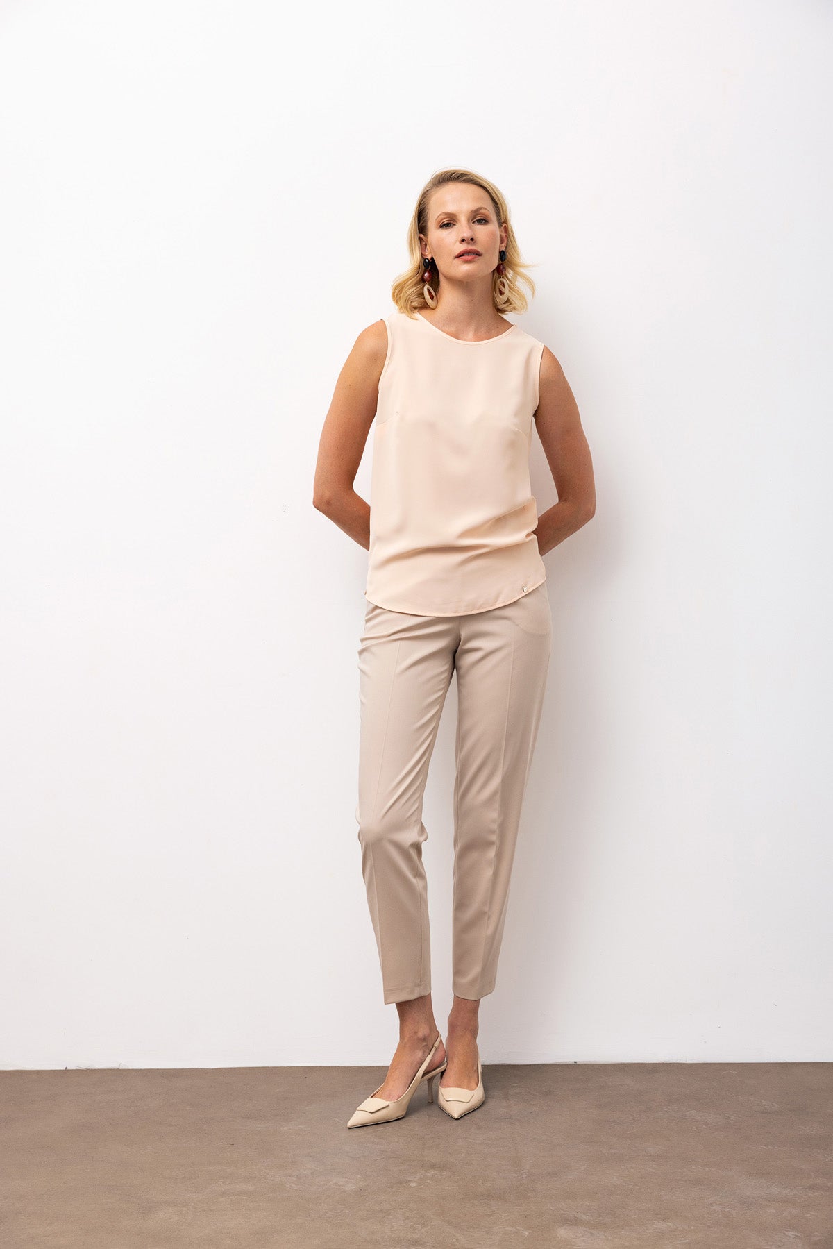 Klasik Yuvarlak Yaka Kolsuz Bluz