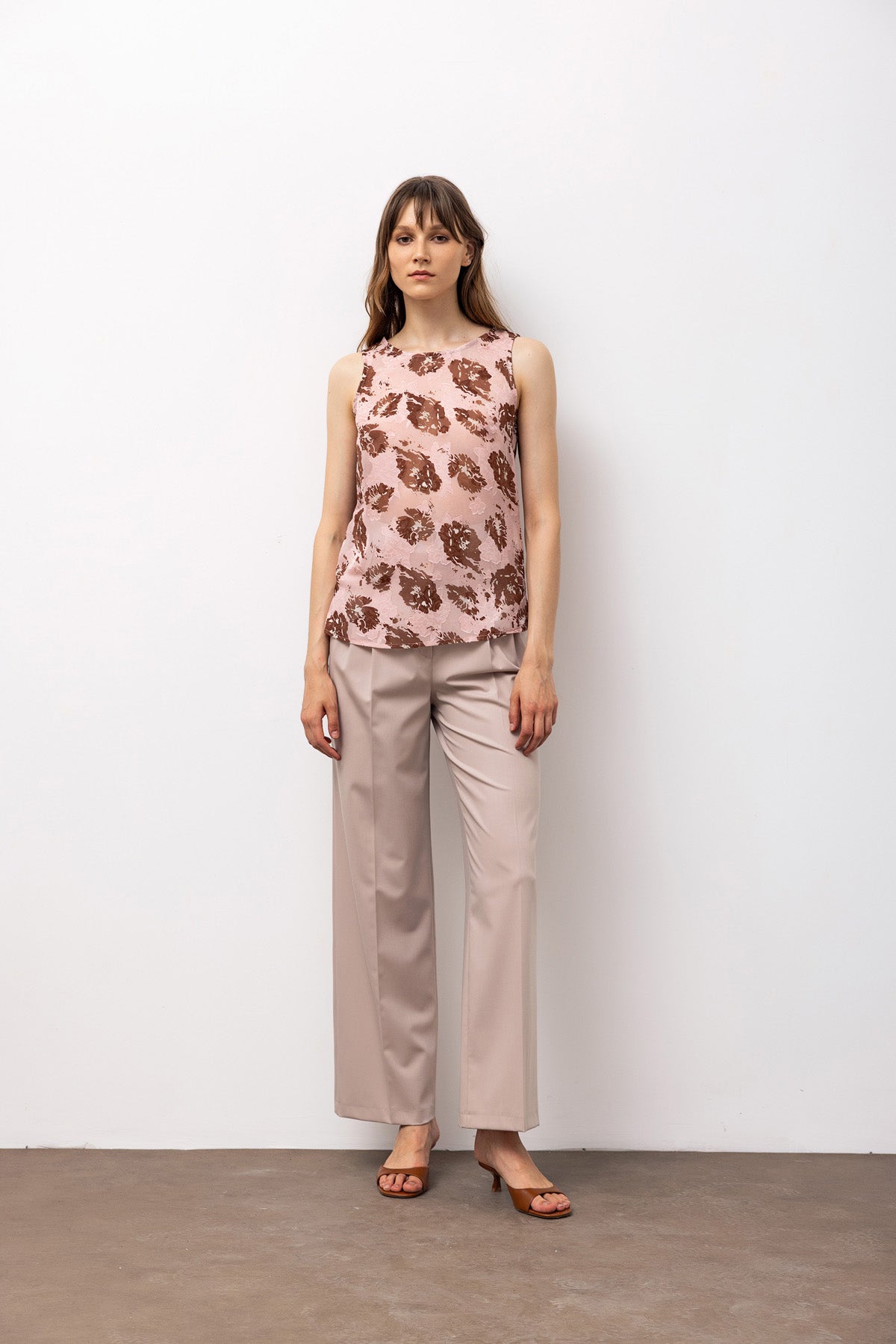 Transparan Çiçekli Kolsuz Bluz - Pembe